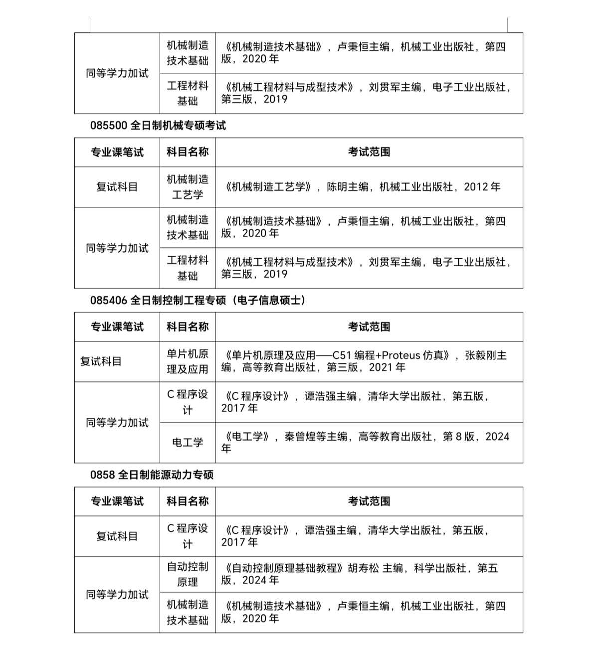 085406控制工程(专硕) 085800能源动力(专硕)