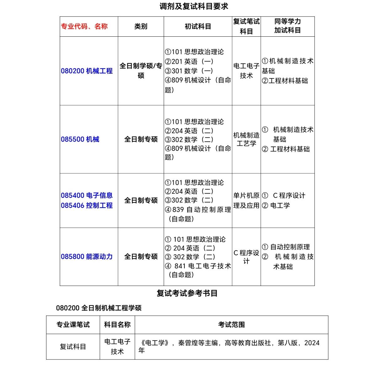② 进入调剂复试名单的考生本、专科专业遴选优先级顺序依次为:能源与动力工程>电气工程及其自动化>自动化>机械电子工程>电子科学与技术>通信工程>信息工程>其他相近专业。