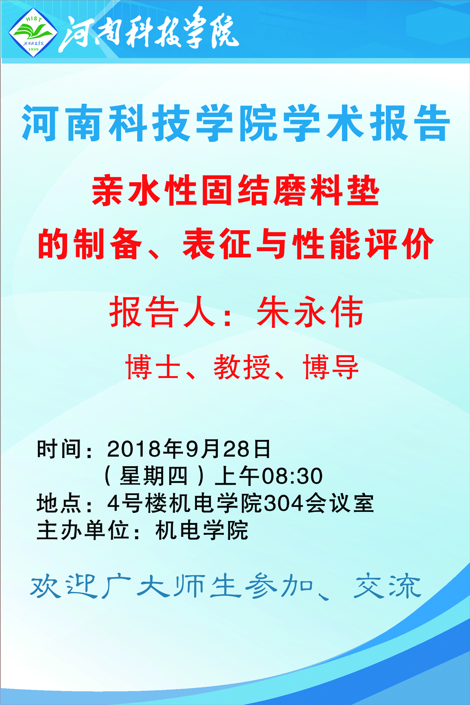 主讲人简介:朱永伟,博士、教授、博导。中国磨料加工技术学会理事,中国光整加工技术学会理事,中国机械工程学会高级会员,国家自然科学基金通讯评审专家。主持国家自然科学基金项目3项,省部级项目10余项,重大企业委托开发及转化项目近10项。在国内外权威学术期刊或重要学术会议发表论文近100篇,其中SCI、EI收录40余篇,授权发明专利10余项。