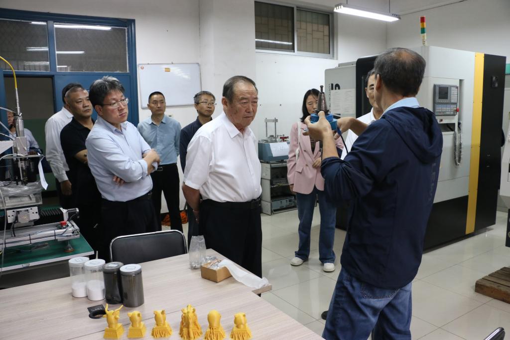 张铁岗、蒋剑春一行先后参观调研了先进切削实验室、先进材料制备与表面强化实验室。调研过程中,实验室负责人汇报了实验室现状、发展规划,展示了学生所做的设计产品。