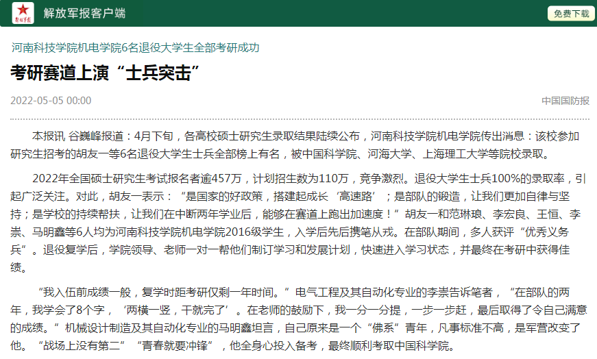 【解放军报】《考研赛道上演“士兵突击”——91猫先生