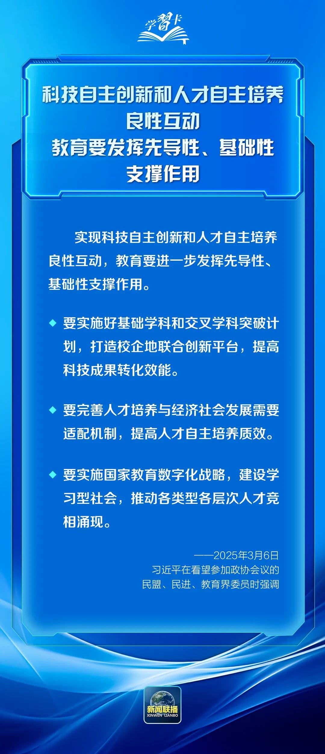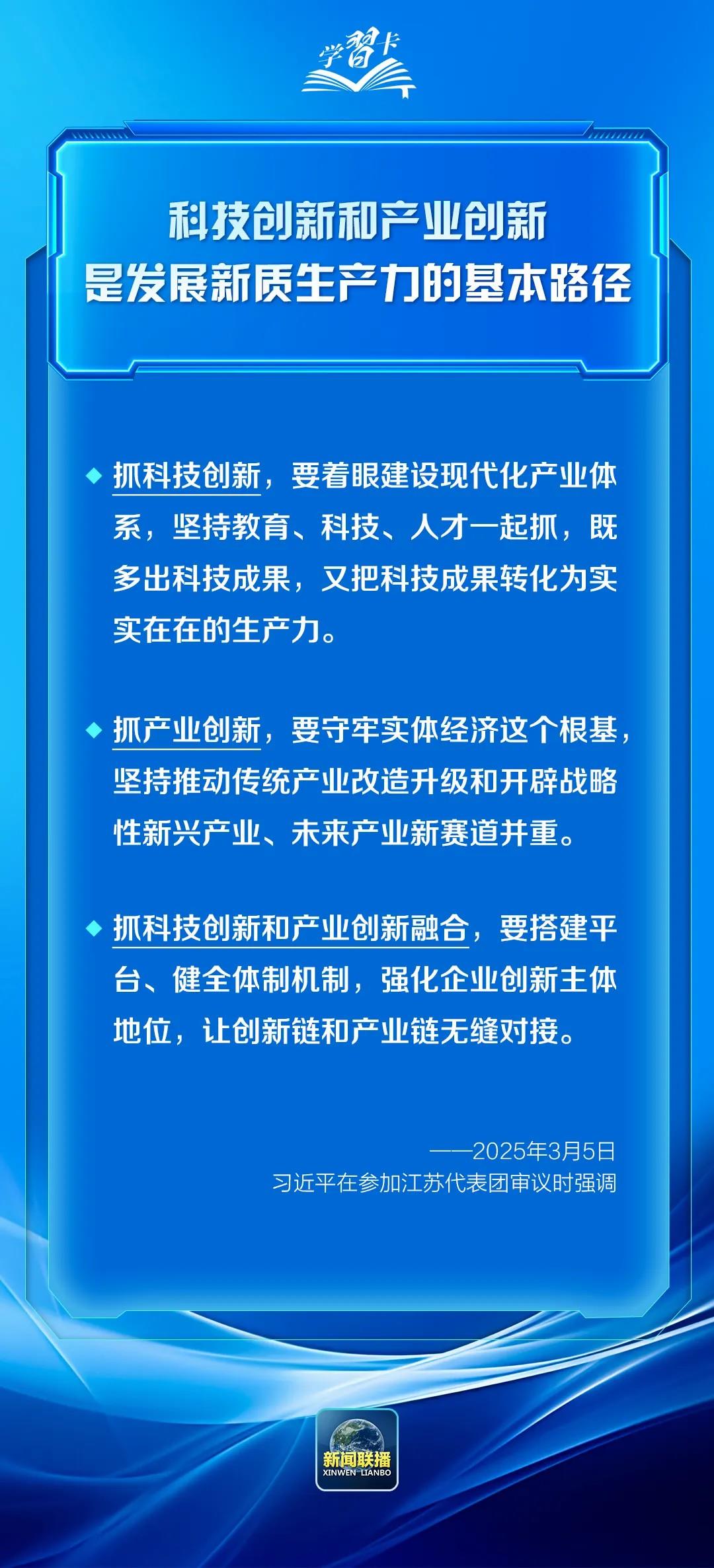 推进中国式现代化,科学技术要打头阵,科技创新是必由之路。 2025年全国两会期间,习近平总书记参加团组审议讨论时,多次提到科技创新这一关键命题,强调“科技创新和产业创新,是发展新质生产力的基本路径”。