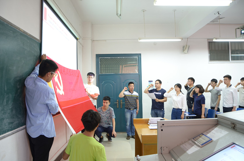 全体党员也面向党旗重温入党誓词,庄严宣誓,不辜负学校的期望,立志做一名合格的共产党员,为毕业生文明离校工作站好最后一班岗。