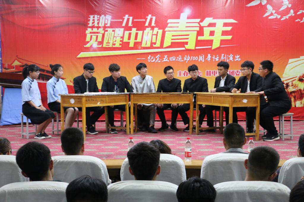 纪念“五四运动100周年”系列活动之一,活动的主题是“青春心向党,建功新时代”。演出回顾了五四爱国运动历程,让青年学生对“爱国、进步、民主、科学”的五四精神有了更加深刻的理解,激励青年学生将革命先辈们的爱国精神融入到今后的学习、工作和生活中,自觉成为能堪当民族复兴大任的时代新人。