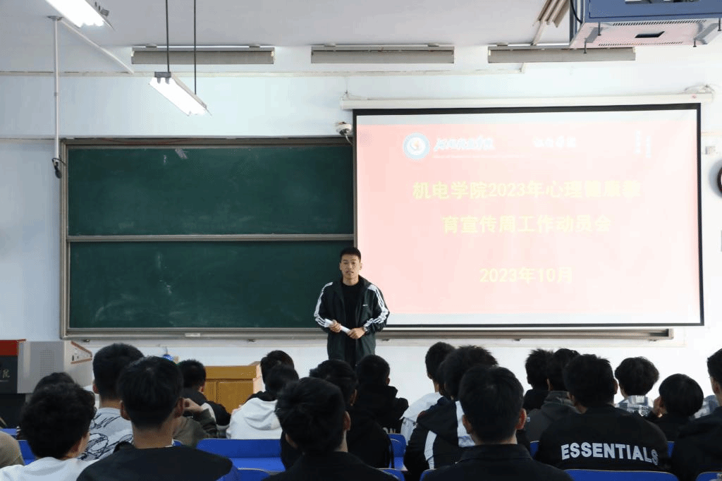 在四合二教室召开“2023年心理健康教育宣传周工作动员会”,部分学生代表参加了此次动员会。会议由学院团委副书记孙刚远主持。