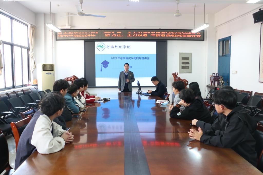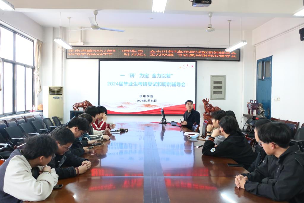 在4304会议室举行了以“一‘研’为定,全力以‘复’”为主题的考研复试和调剂辅导会。学院党委副书记何涛、毕业生班辅导员刘颖和拟参加复试调剂的考研学生参加了辅导会。
