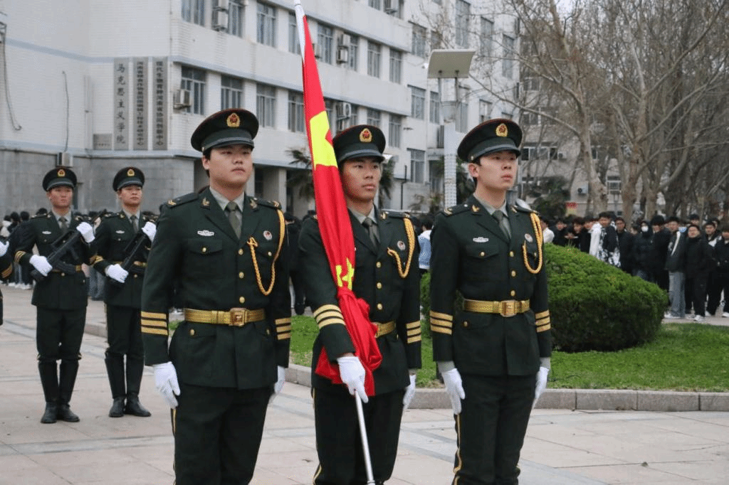清晨七时整,升国旗仪式正式开始。国旗护卫队队员迈着整齐划一、铿锵有力的步伐,护送着五星红旗走向旗杆。学院全体师生面向国旗肃立致礼。随着激情昂扬的《义勇军进行曲》响起,师生们注视着五星红旗冉冉升起,在熠熠晨光中迎风飘扬。