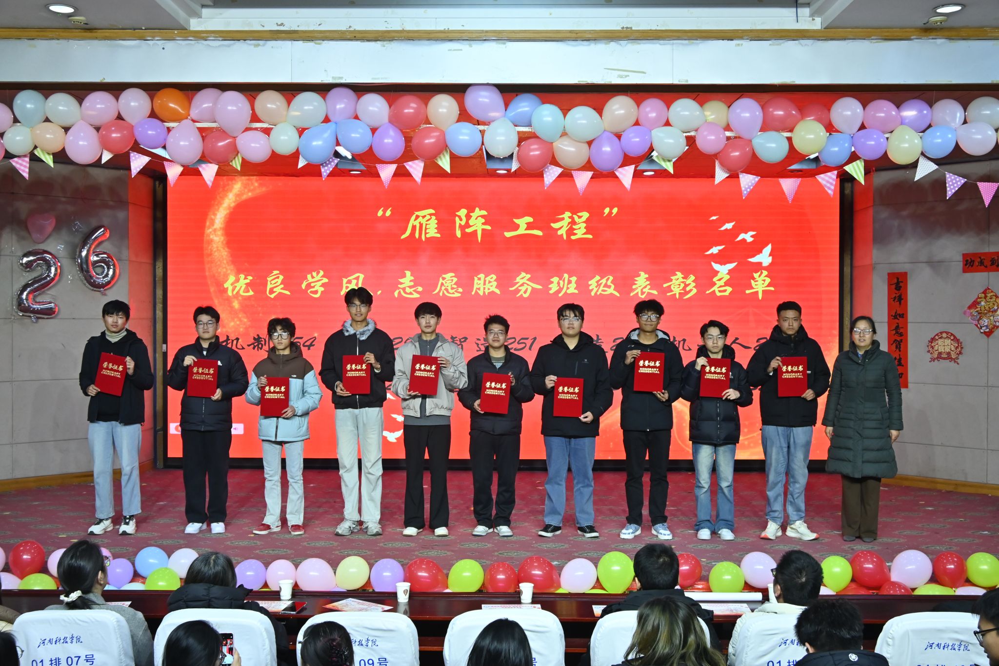 在学生工作表彰环节,学院领导为荣获“2025级优秀代理班主任”“优良学风班级”“志愿服务先进集体”的同学颁发了荣誉证书并合影留念。
