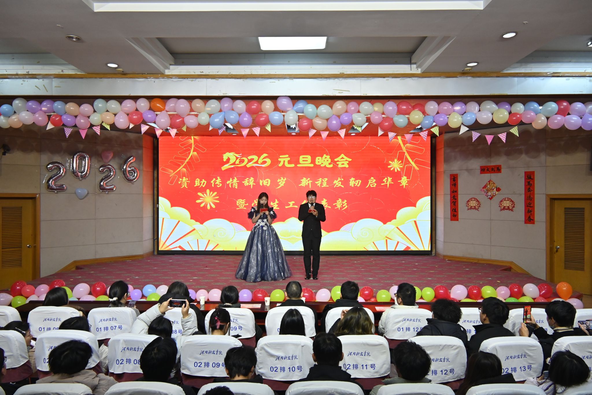 在图教201举办以“资助传情辞旧岁,新程发轫启华章”为主题的2026年元旦晚会暨学生工作表彰活动。学院党政领导班子成员,全体辅导员及学生代表共300余人参加。