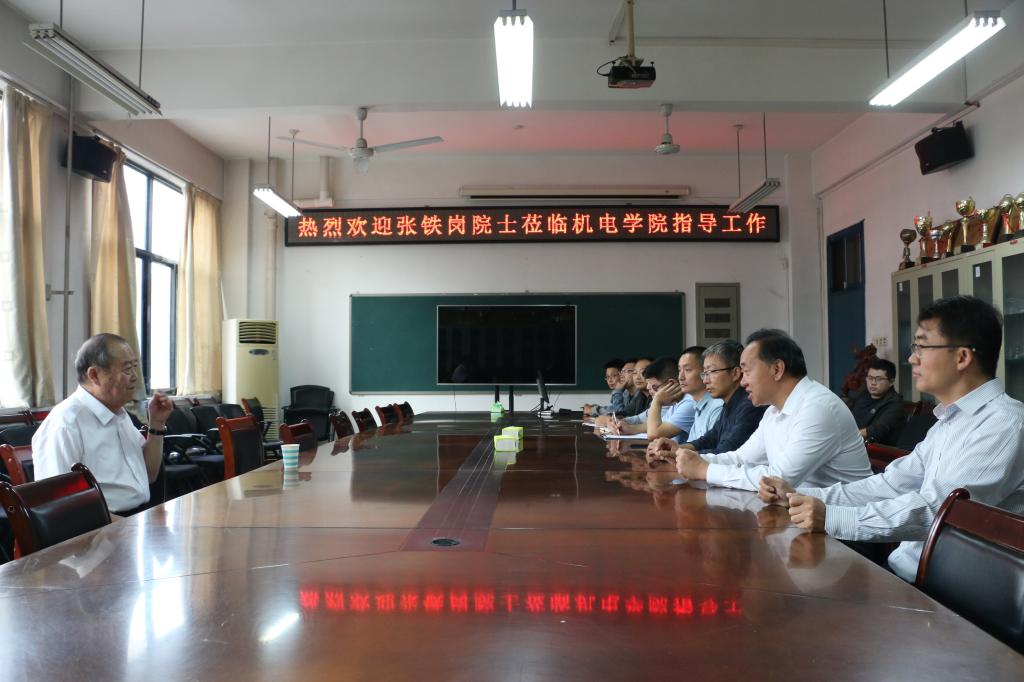 院长聂福全向张铁岗院士汇报了学院发展概况、发展方向和当前的研究方向。张铁岗对学院在智能制造、军工科技、新能源等方面取得的成绩给予了高度评价,充分肯定了“顽强拼搏自强不息”的机电精神。他希望学院抢抓机遇,深化产学研融合,进一步发挥专业特色和科研优势,助力学校“博大工程”,努力培养党和国家需要的复合型人才。